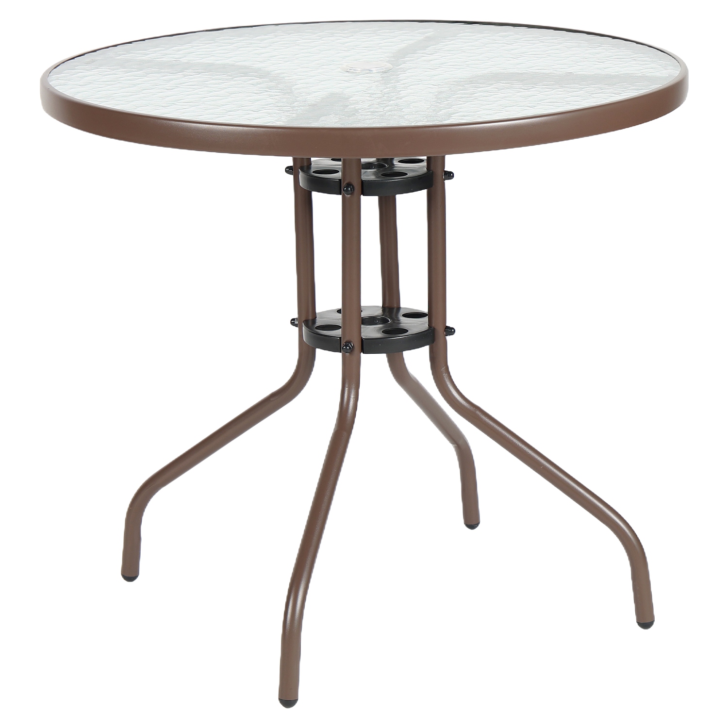 Η ανθεκτική μεταλλική κατασκευή και η γυάλινη επιφάνεια εξασφαλίζουν αντοχή στις καιρικές συνθήκες. Το καφέ χρώμα προσθέτει μοντέρνα αισθητική στον χώρο σας.