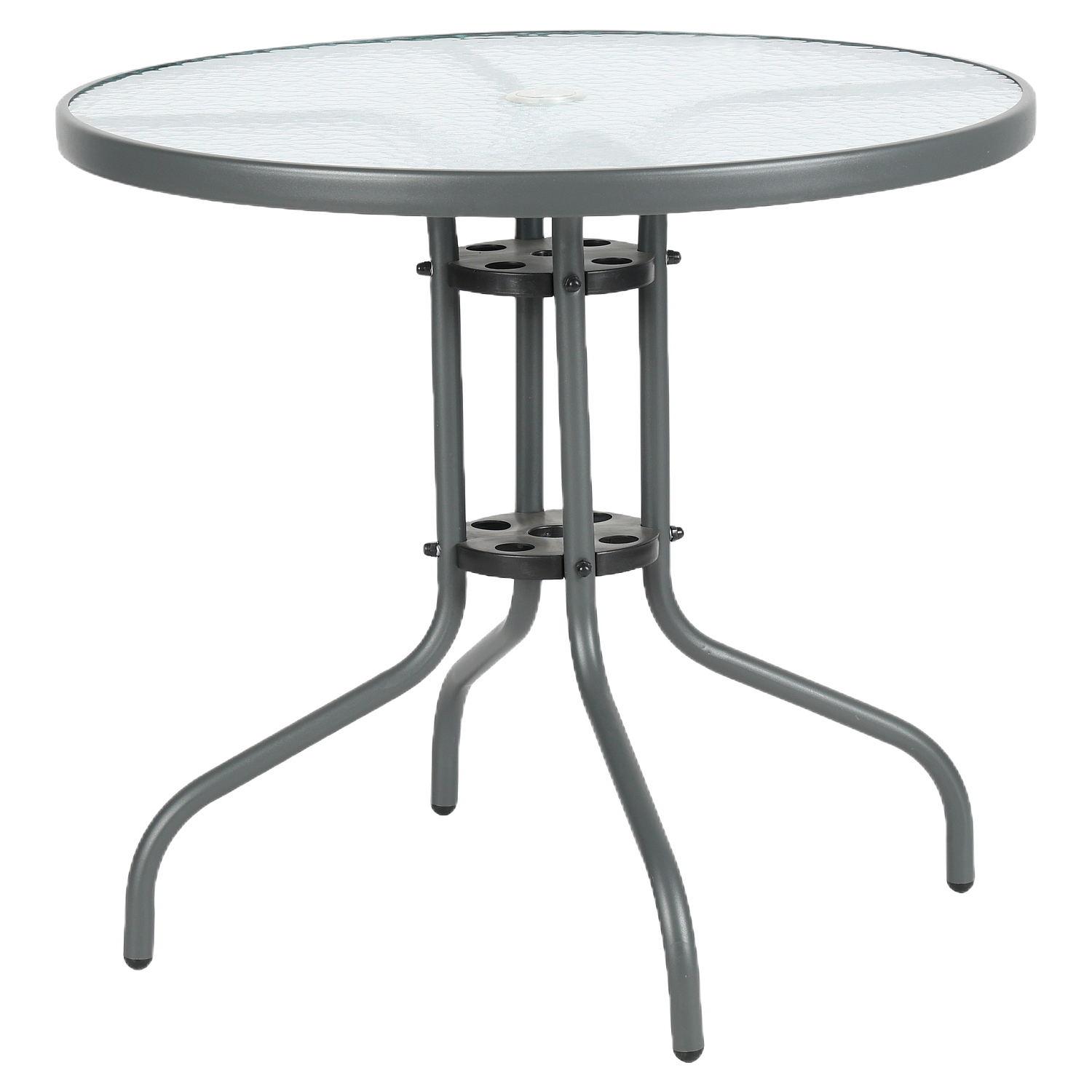 Η ανθεκτική μεταλλική κατασκευή και η γυάλινη επιφάνεια εξασφαλίζουν αντοχή στις καιρικές συνθήκες. Το γκρι χρώμα προσθέτει μοντέρνα αισθητική στον χώρο σας.