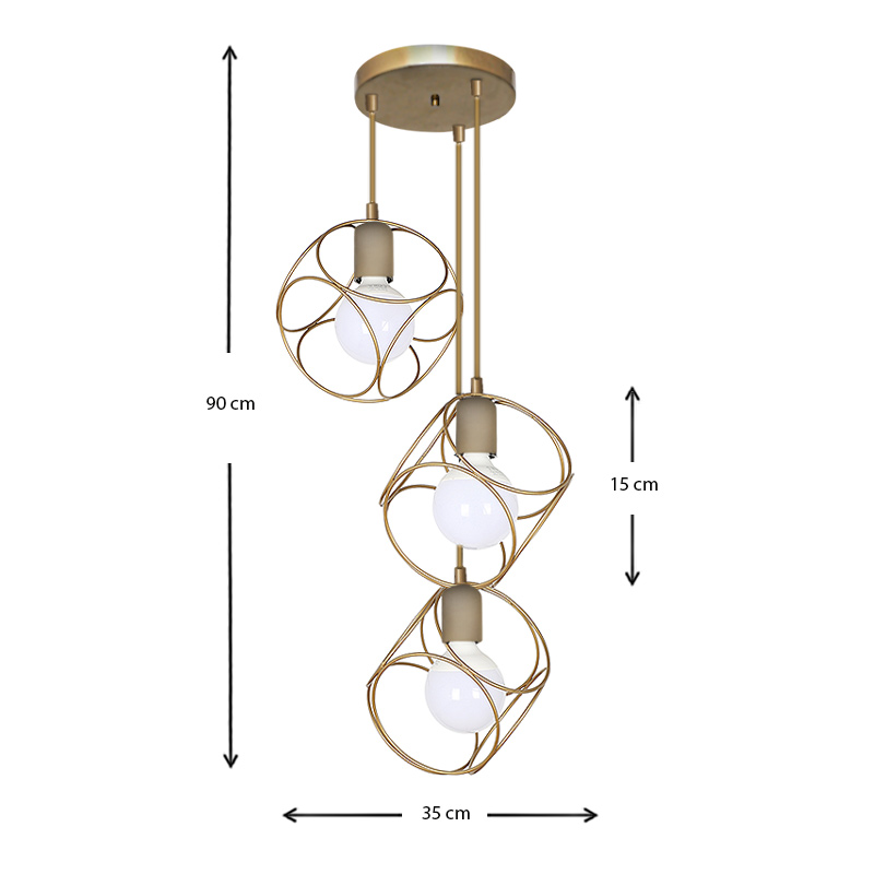 Φωτιστικό οροφής Lusita E27 μεταλλικό τρίφωτο χρώμα χρυσό 35x35x90εκ.