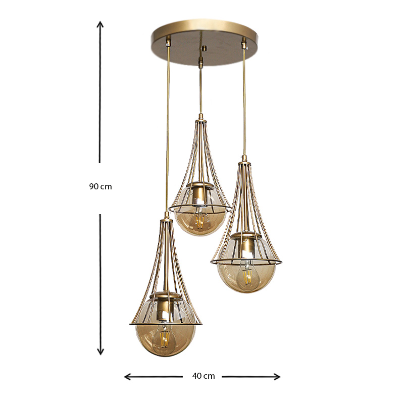 Φωτιστικό οροφής Chavi E27 μεταλλικό τρίφωτο χρωμα χρυσό 40x40x90εκ.