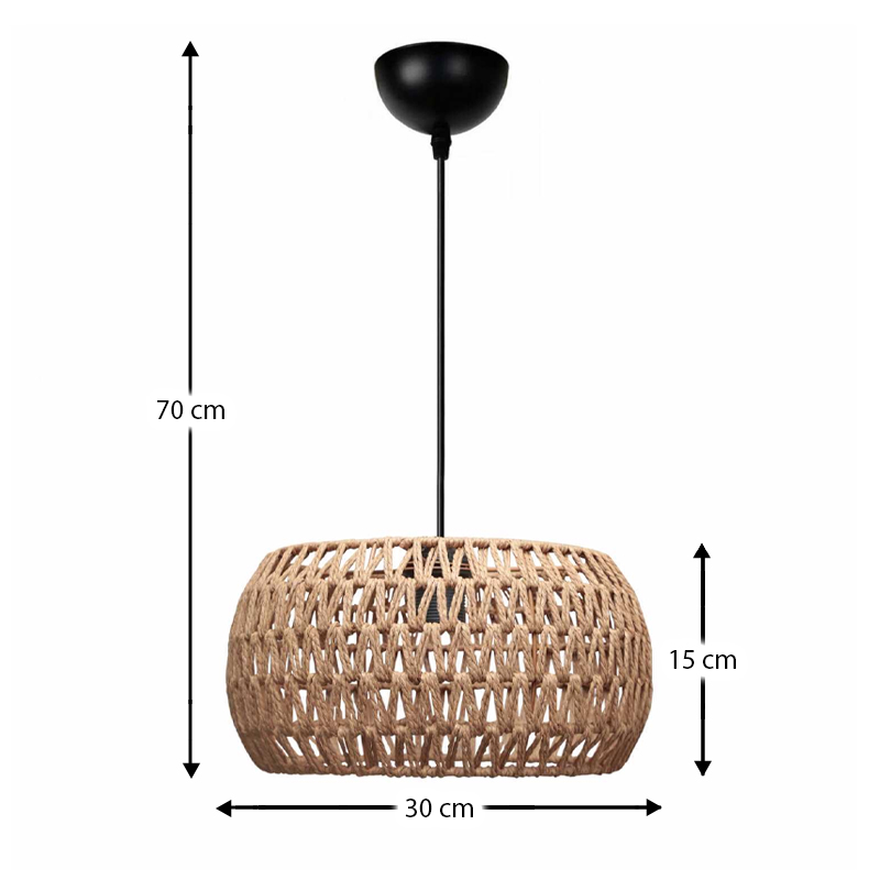 Φωτιστικό οροφής Miranda E27 από σχοινί μονόφωτο χρώμα φυσικό Ø30x70εκ.