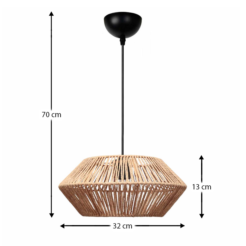 Φωτιστικό οροφής Castel E27 από σχοινί μονόφωτο χρώμα φυσικό Ø32x70εκ.