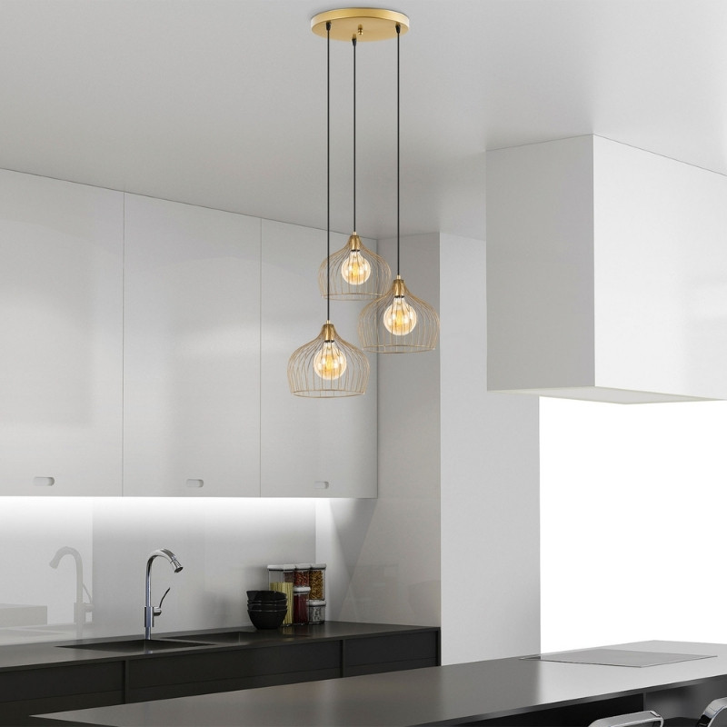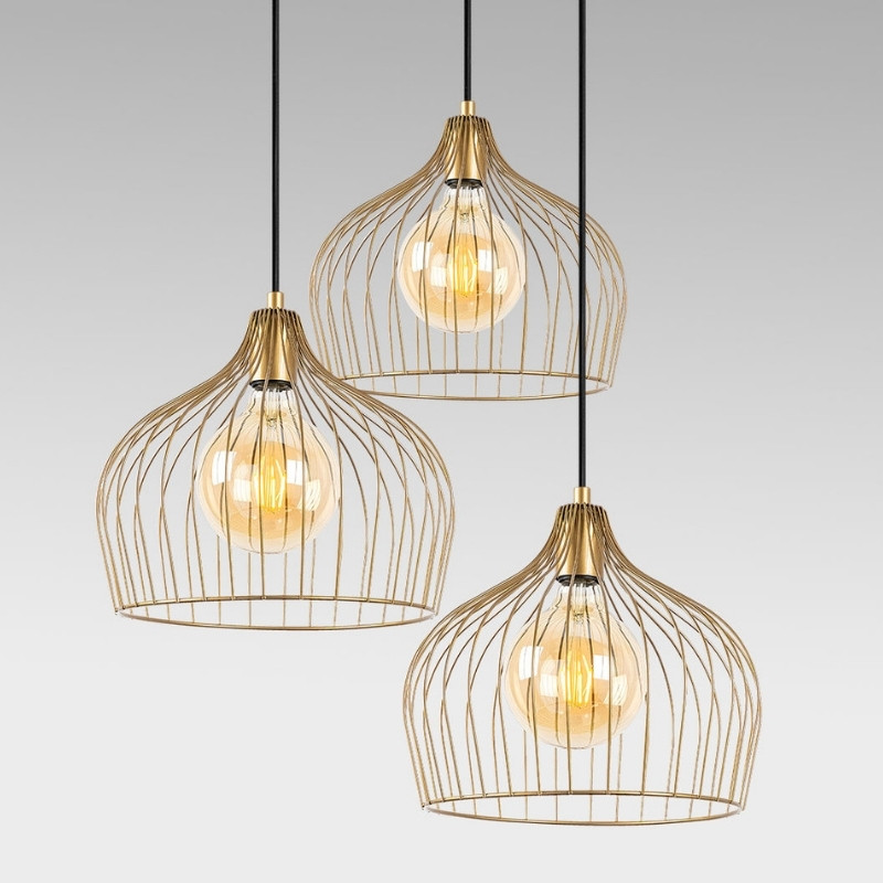Φωτιστικό οροφής Alvaro E27 μεταλλικό τρίφωτο χρώμα χρυσό 56x40x121εκ.
