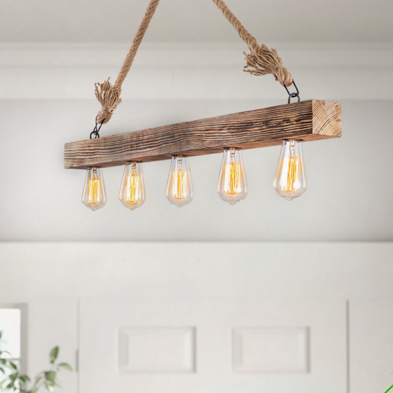 Φωτιστικό οροφής Erebos E27 ξύλο - σχοινί πεντάφωτο χρώμα φυσικό 100x7x53εκ.