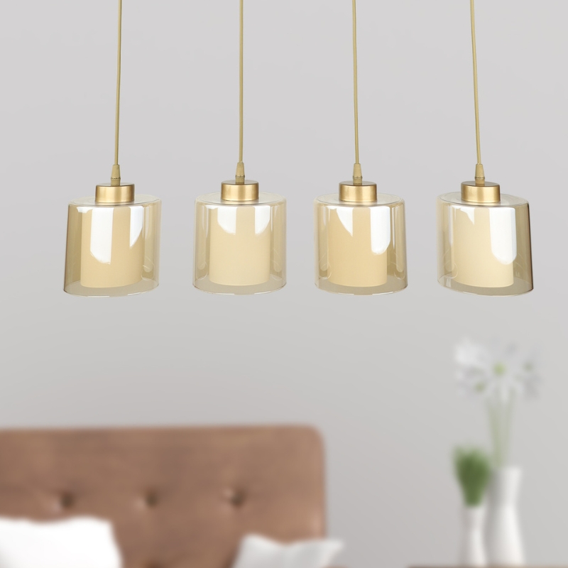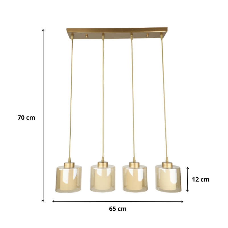 Φωτιστικό οροφής Kenedy E27 μεταλλικό - γυάλινο τετράφωτο χρώμα χρυσό 65x5x70εκ.