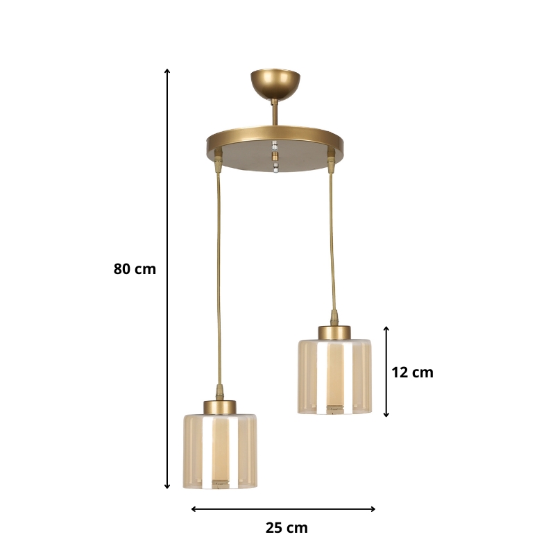 Φωτιστικό οροφής Kenedy E27 μεταλλικό - γυάλινο δίφωτο χρώμα χρυσό Ø25x80εκ.