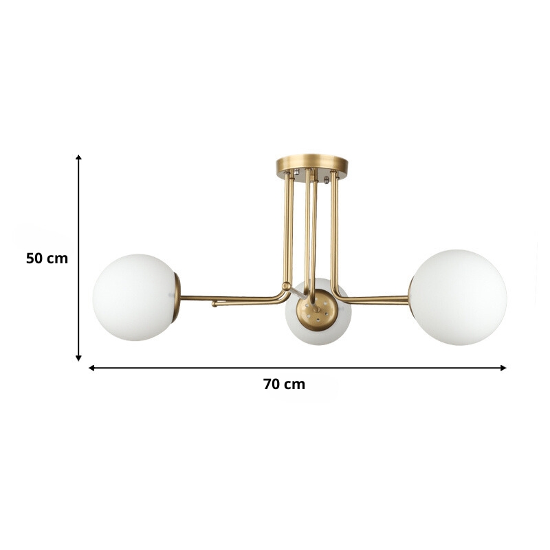 Φωτιστικό οροφής Maxidex Ε27 μεταλλικό - γυάλινο τρίφωτο χρώμα χρυσό Ø70x50εκ.