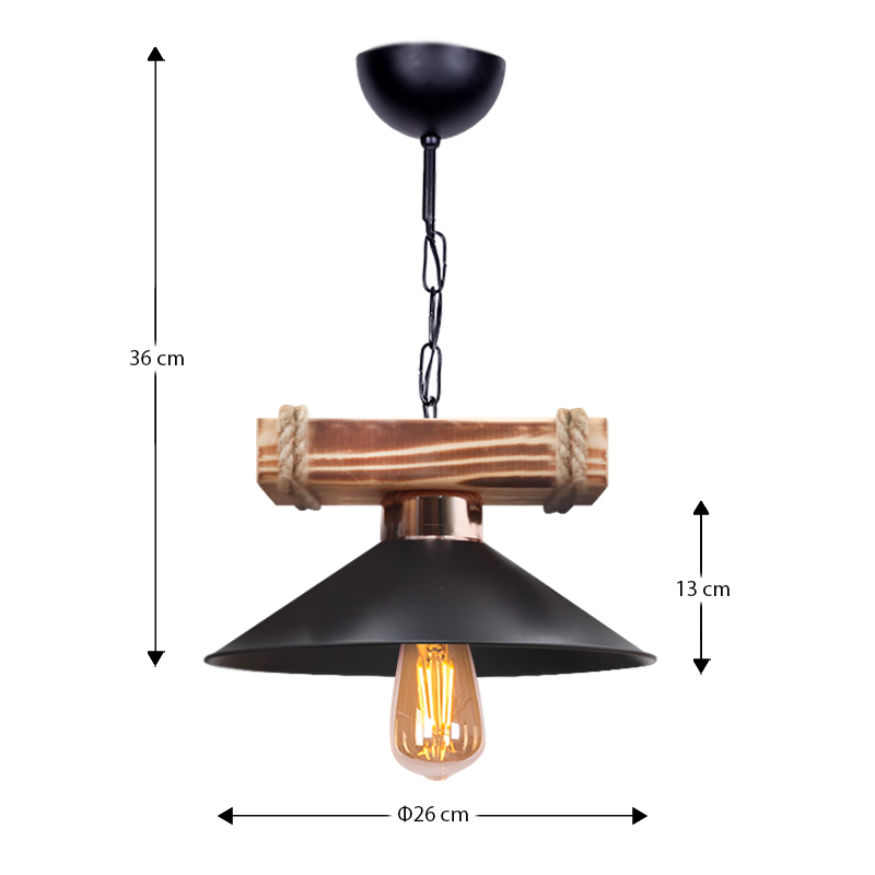 Φωτιστικό οροφής Melio E27 ξύλινο - πλαστικό μονόφωτο χρώμα μαύρο Ø26x36εκ.