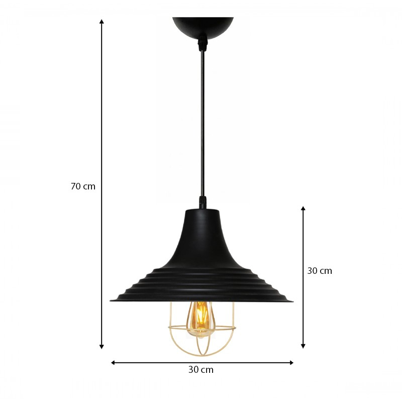 Φωτιστικό οροφής Retro E27 μεταλλικό μονόφωτο χρώμα μαύρο Φ30x70εκ.