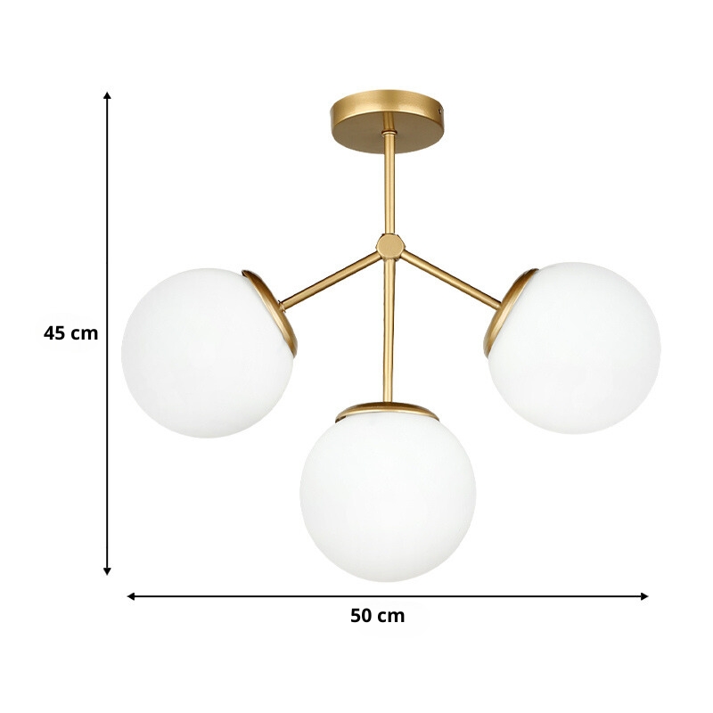 Φωτιστικό οροφής Alison Ε27 μεταλλικό - γυάλινο τρίφωτο χρώμα χρυσό Ø50x45εκ.