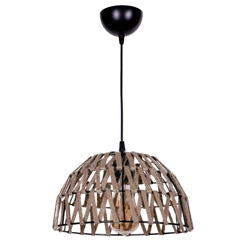 Φωτιστικό οροφής Simoza E27 μεταλλικό - σχοινί μονόφωτο χρώμα φυσικό Ø30x70εκ.
