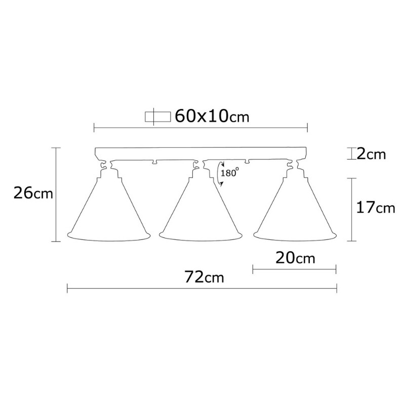 Φωτιστικό οροφής Arden E27 μεταλλικό τρίφωτο χρώμα μαύρο 72x20x26εκ.