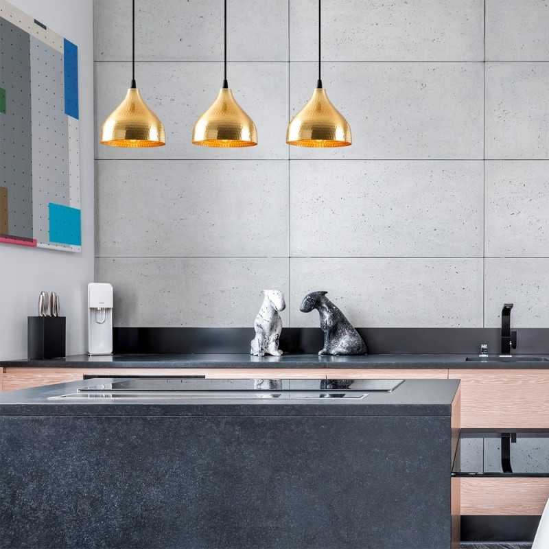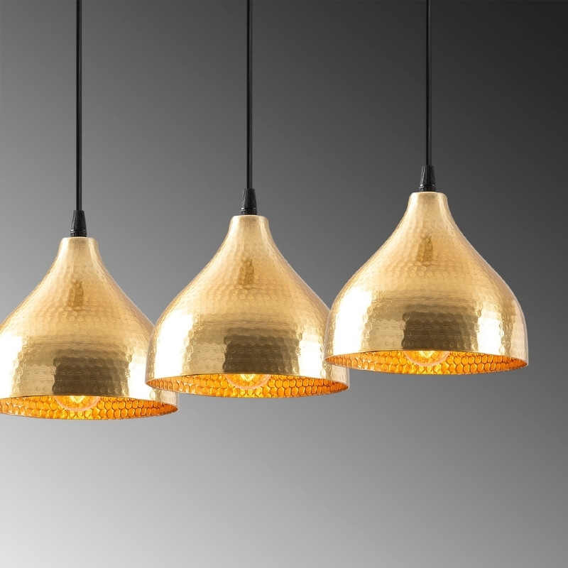 Φωτιστικό οροφής Fida E27 μεταλλικό τρίφωτο χρώμα χρυσό 68x18x114εκ.