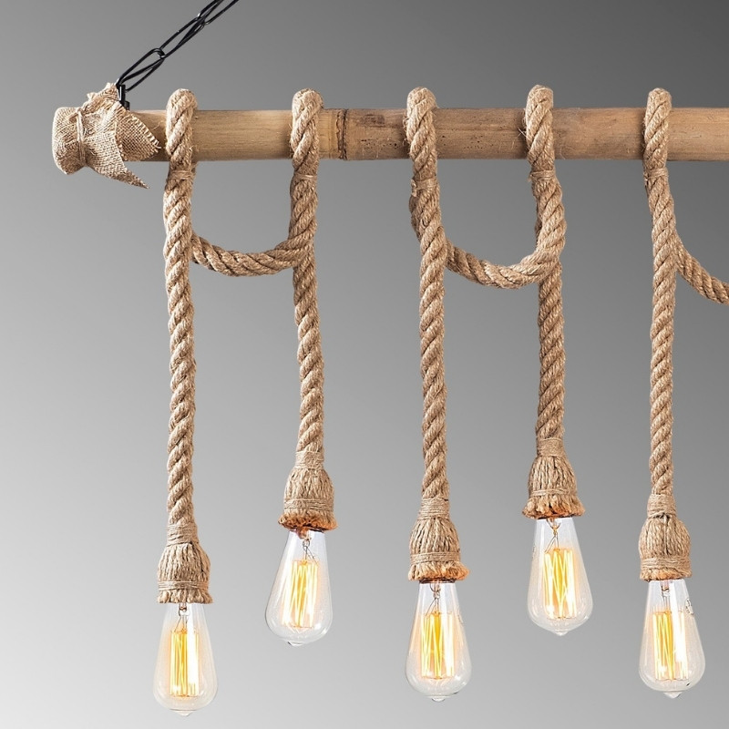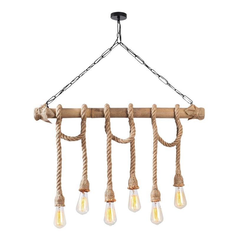 Φωτιστικό οροφής Giza E27 ξύλο - σχοινί εξάφωτο χρώμα φυσικό 80x8x90εκ.