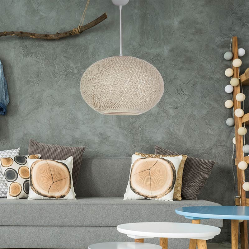 Φωτιστικό οροφής Gibson από σχοινί μονόφωτο χρώμα μπεζ 40x21x70εκ.
