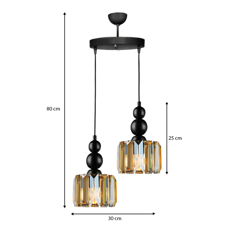 Φωτιστικό οροφής Alaba E27 μεταλλικό - γυάλινο δίφωτο χρώμα μαύρο 30x30x80εκ.