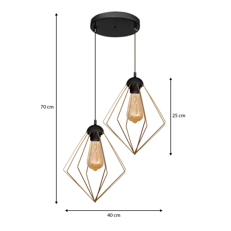 Φωτιστικό οροφής Nura E27 μεταλλικό δίφωτο χρώμα χρυσό 40x40x70εκ.