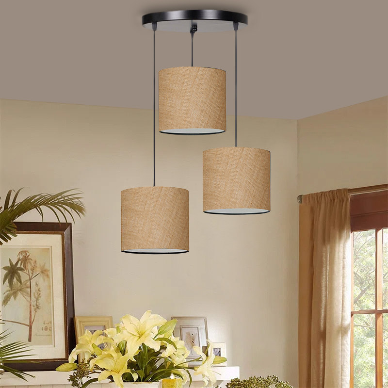 Φωτιστικό οροφής Rosie γιούτα ύφασμα τρίφωτο χρώμα φυσικό 15x15x90εκ.