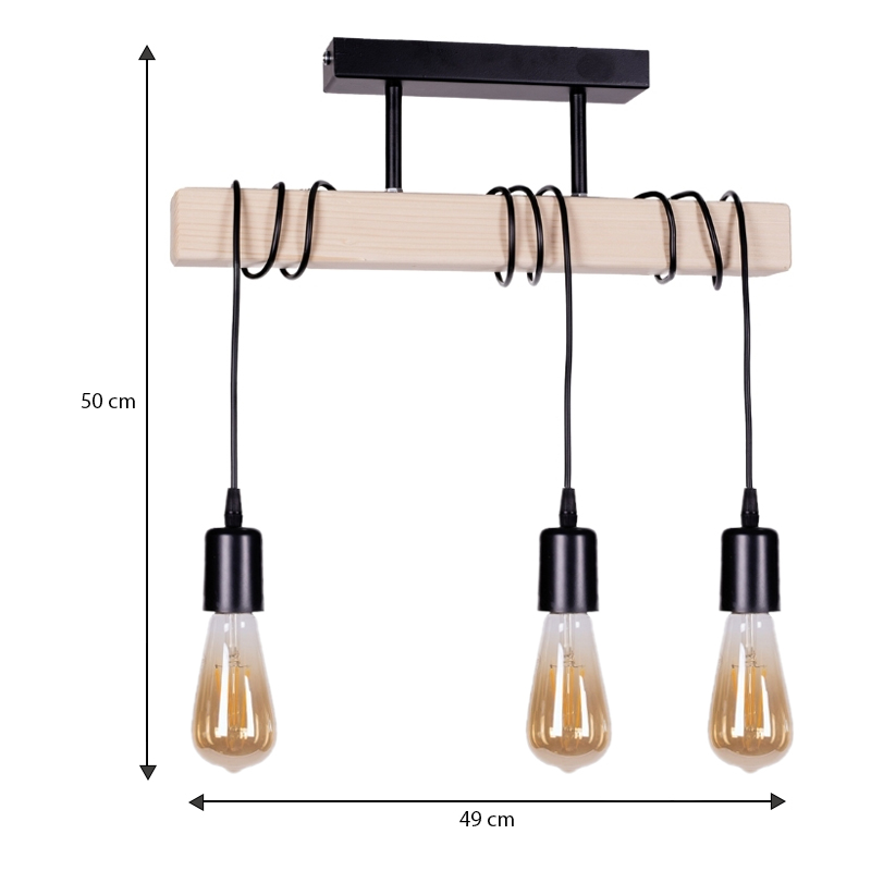 Φωτιστικό οροφής Radovan E27 ξύλινο τρίφωτο χρώμα φυσικό - μαύρο 49x5x50εκ.