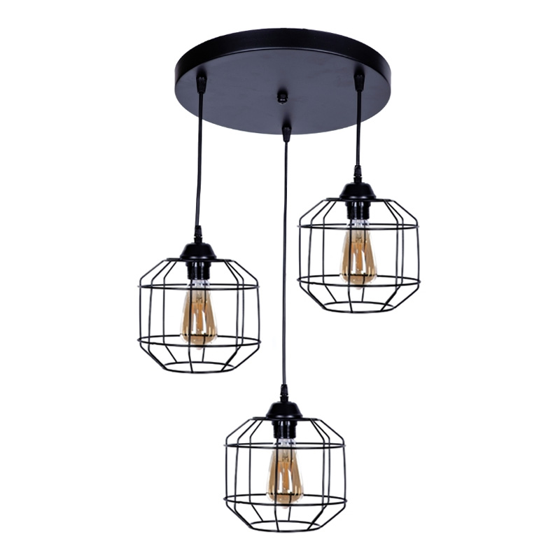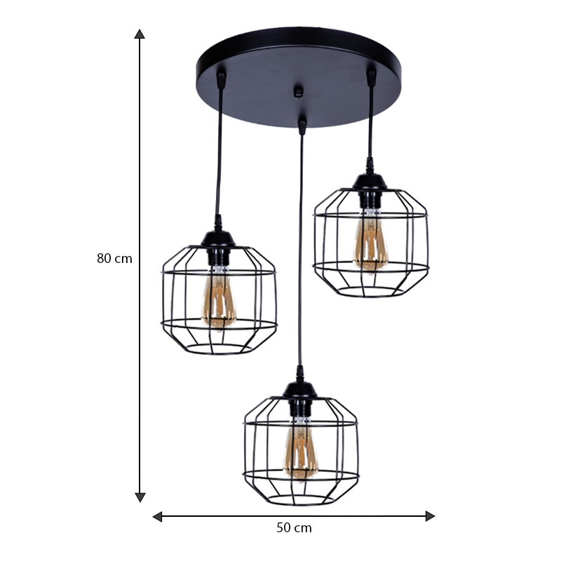 Φωτιστικό οροφής Rago E27 μεταλλικό τρίφωτο χρώμα μαύρο 50x40x80εκ.