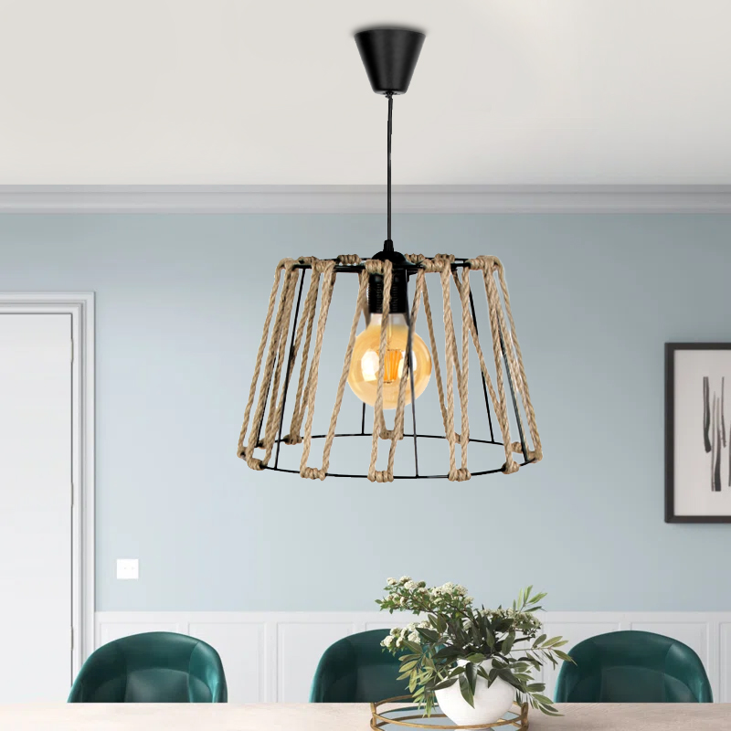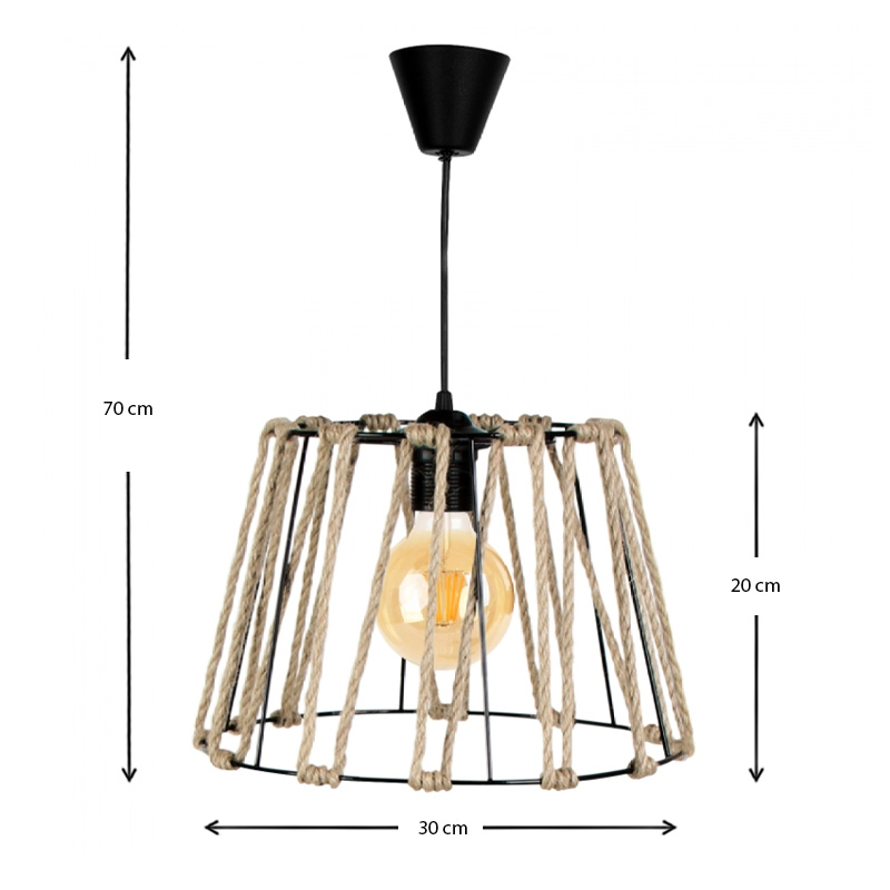 Φωτιστικό οροφής Andrew μέταλλο/σχοινί μονόφωτο χρώμα μαύρο φυσικό 30x30x20εκ.