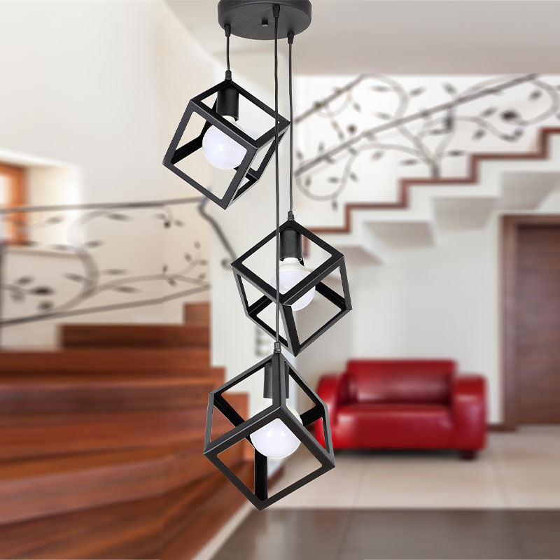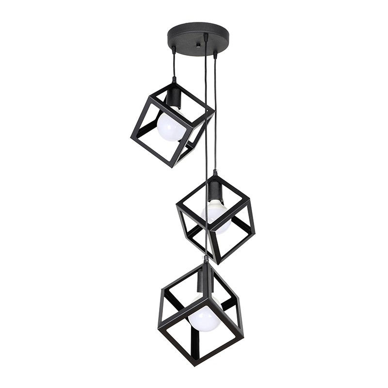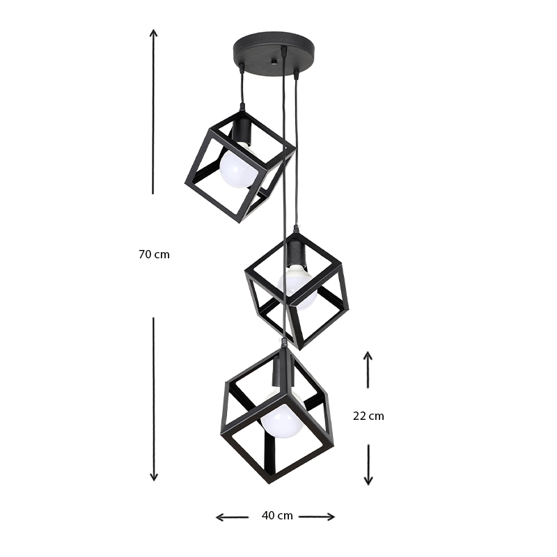 Φωτιστικό οροφής Thora E27 μεταλλικό τρίφωτο χρώμα μαύρο 22x22x70εκ.