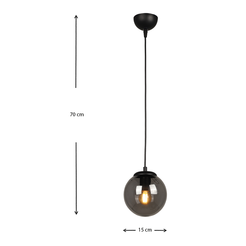 Φωτιστικό οροφής Malta E27 γυάλινο μονόφωτο χρώμα μαύρο 15x15x70εκ.