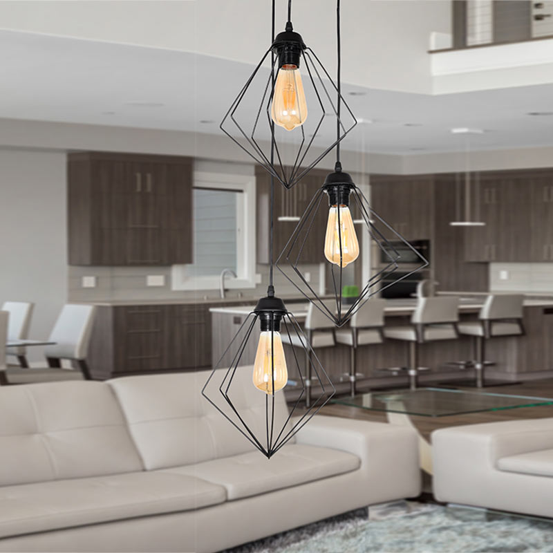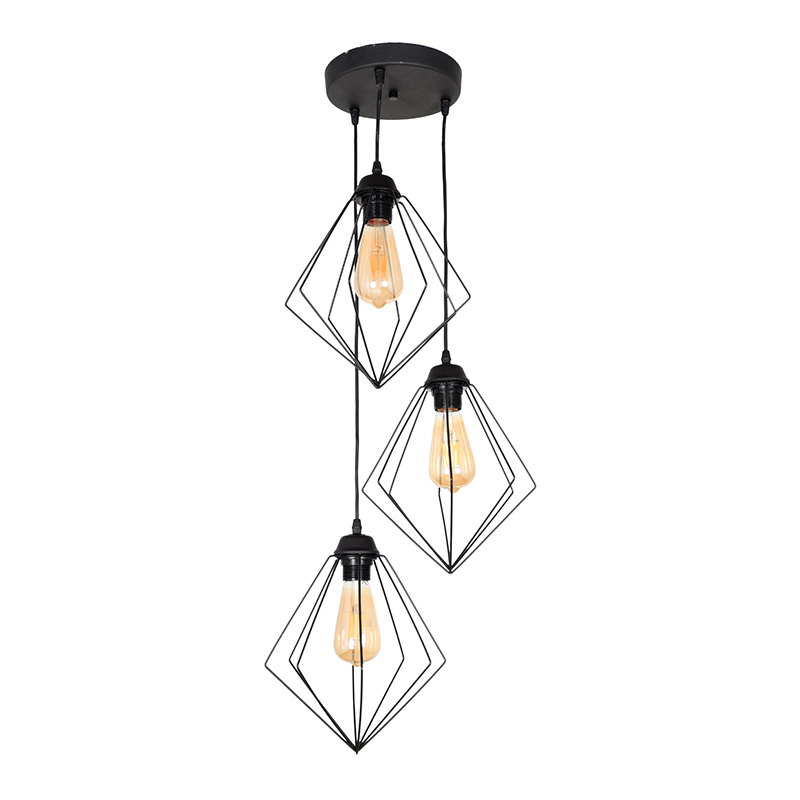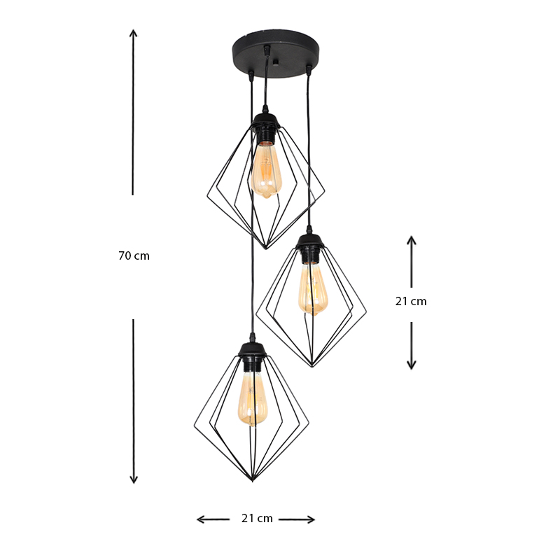 Φωτιστικό οροφής Nura E27 μεταλλικό τρίφωτο χρώμα μαύρο 21x21x70εκ.