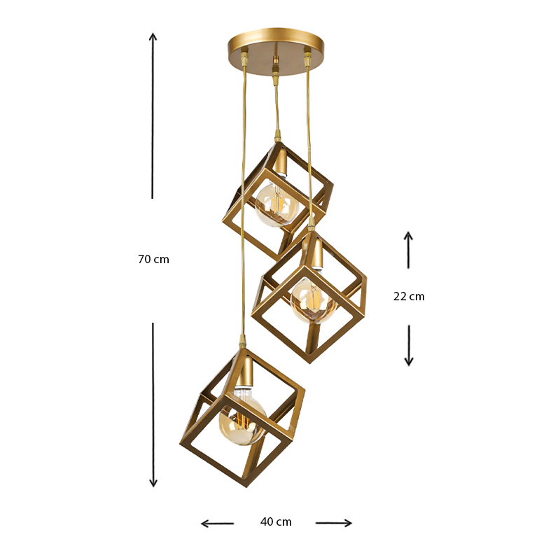 Φωτιστικό οροφής Thora E27 μεταλλικό τρίφωτο χρώμα χρυσό ματ 22x22x70εκ.