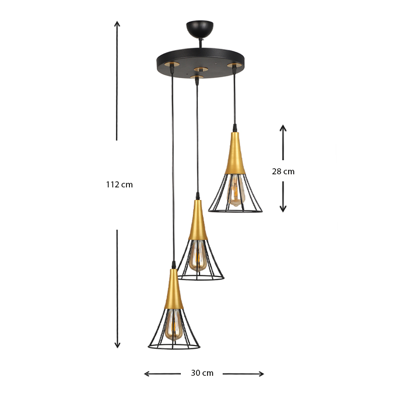 Φωτιστικό οροφής Havana E27 μεταλλικό τρίφωτο χρώμα μαύρο - χρυσό 30x30x112εκ.
