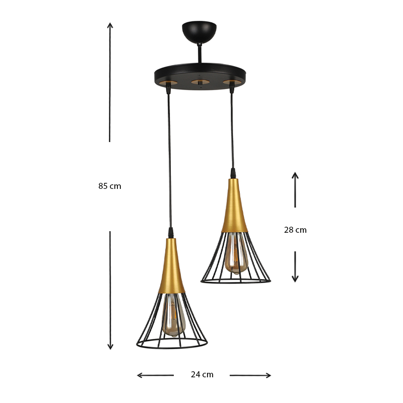 Φωτιστικό οροφής Havana E27 μεταλλικό δίφωτο χρώμα μαύρο - χρυσό 24x24x85εκ.