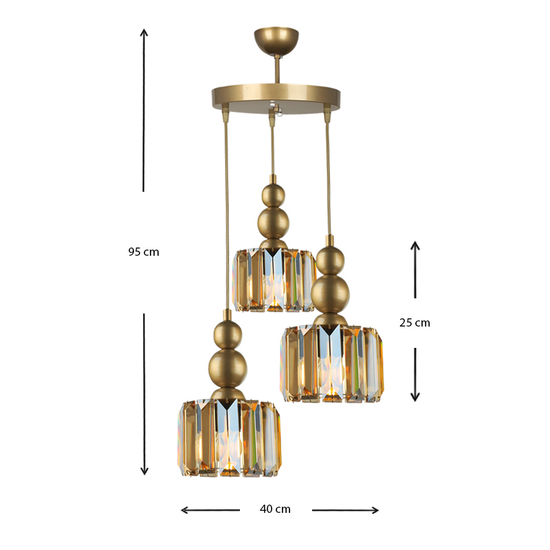 Φωτιστικό οροφής Alaba E27 μεταλλικό - γυάλινο τρίφωτο χρώμα χρυσό 40x40x95εκ.