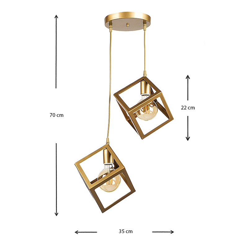 Φωτιστικό οροφής Thora E27 μεταλλικό δίφωτο χρώμα χρυσό ματ 22x22x70εκ.