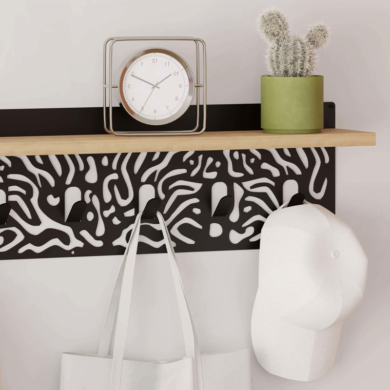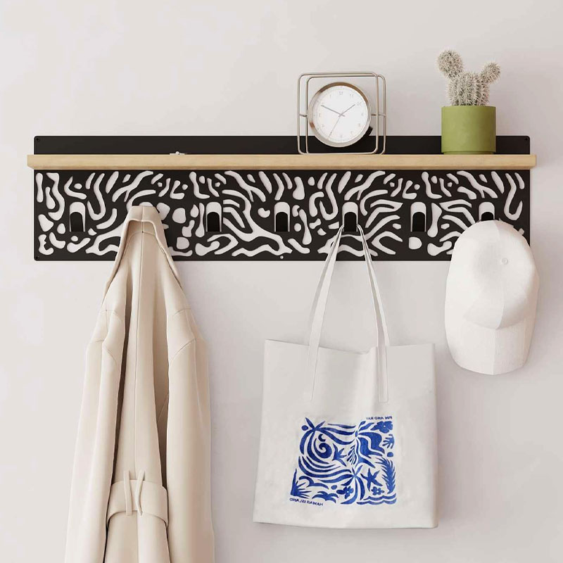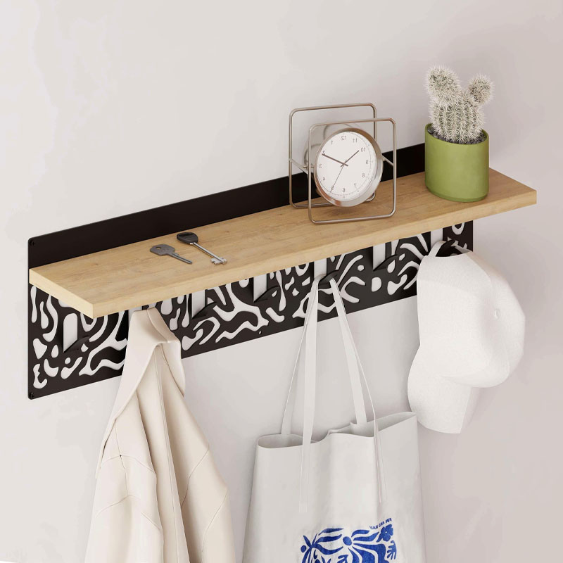 Κρεμάστρα τοίχου Novo από μέταλλο - μελαμίνη χρώμα sapphire oak - μαύρο 80x12,2x20εκ.