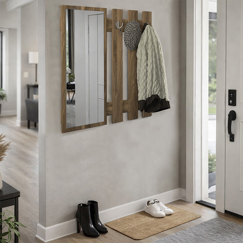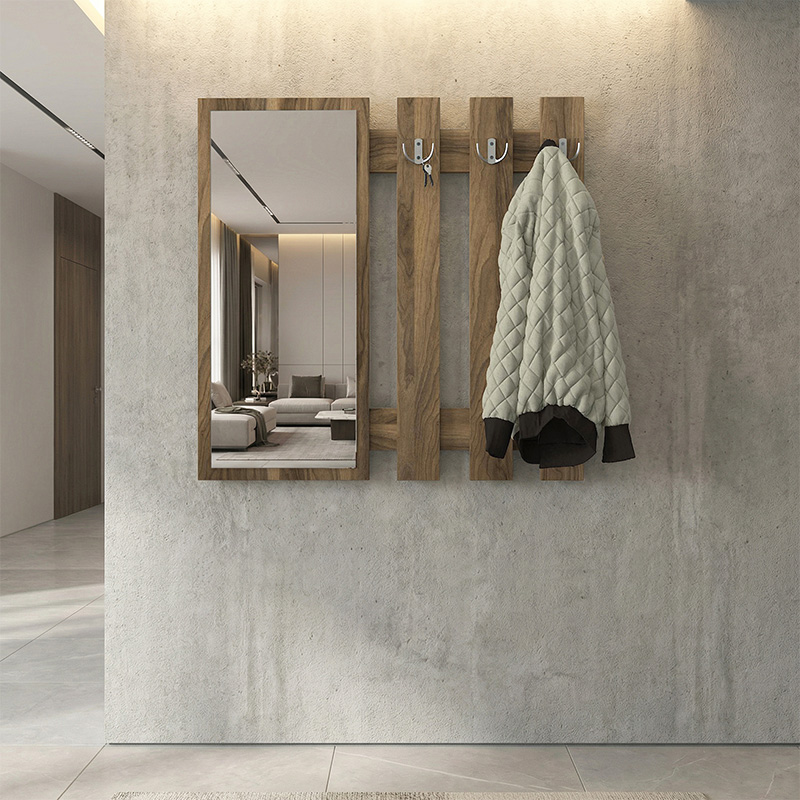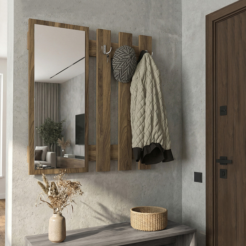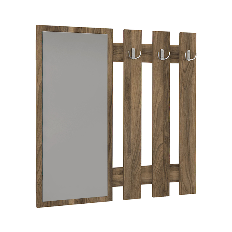 Κρεμάστρα τοίχου με καθρέπτη Folin χρώμα καρυδί 90x4x90εκ.