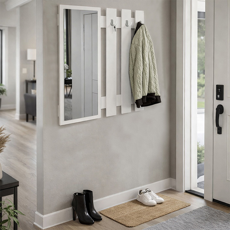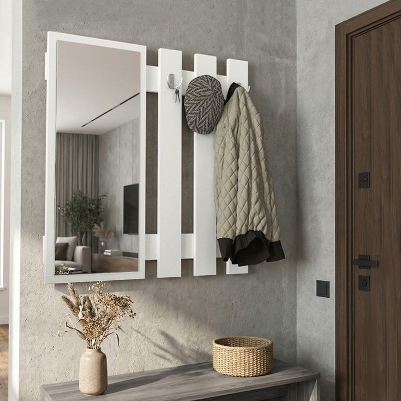 Κρεμάστρα τοίχου με καθρέπτη Folin χρώμα λευκό 90x4x90εκ.