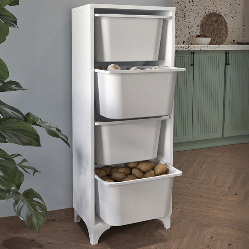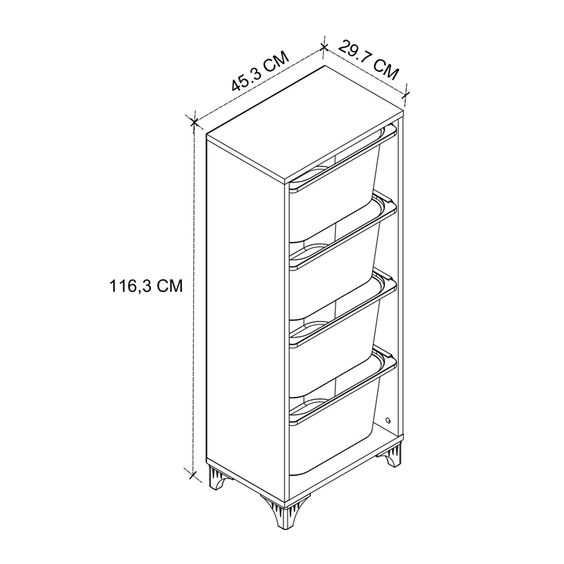 - Διαθέτει τέσσερα συρτάρια κατασκευασμένα από πολυπροπυλένιο για τοποθέτηση των αντικειμένων σας.