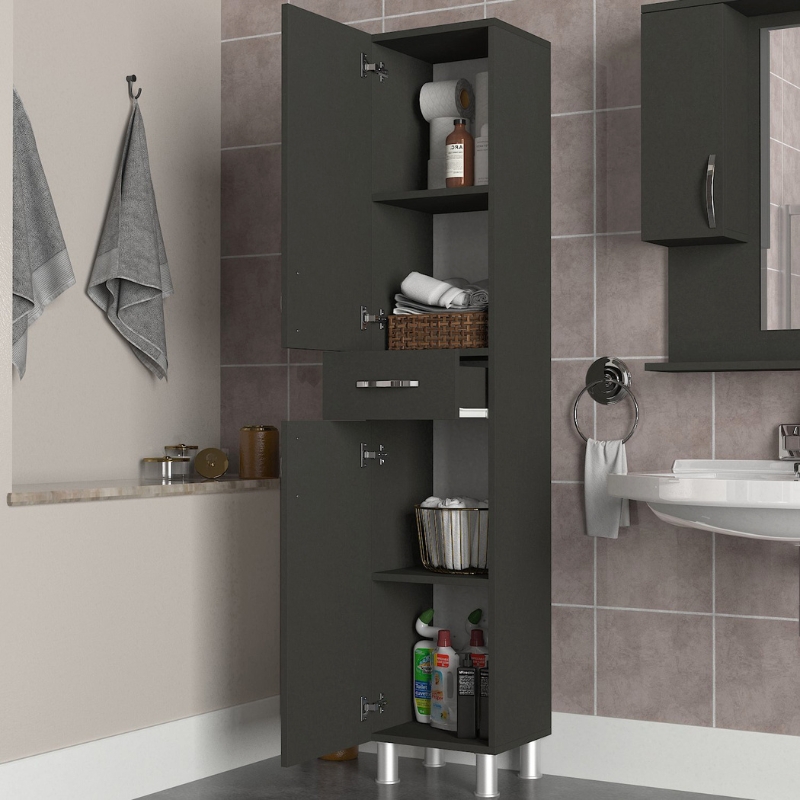 Ντουλάπι κουζίνας - μπάνιου Selina χρώμα ανθρακί 35x31x179εκ.