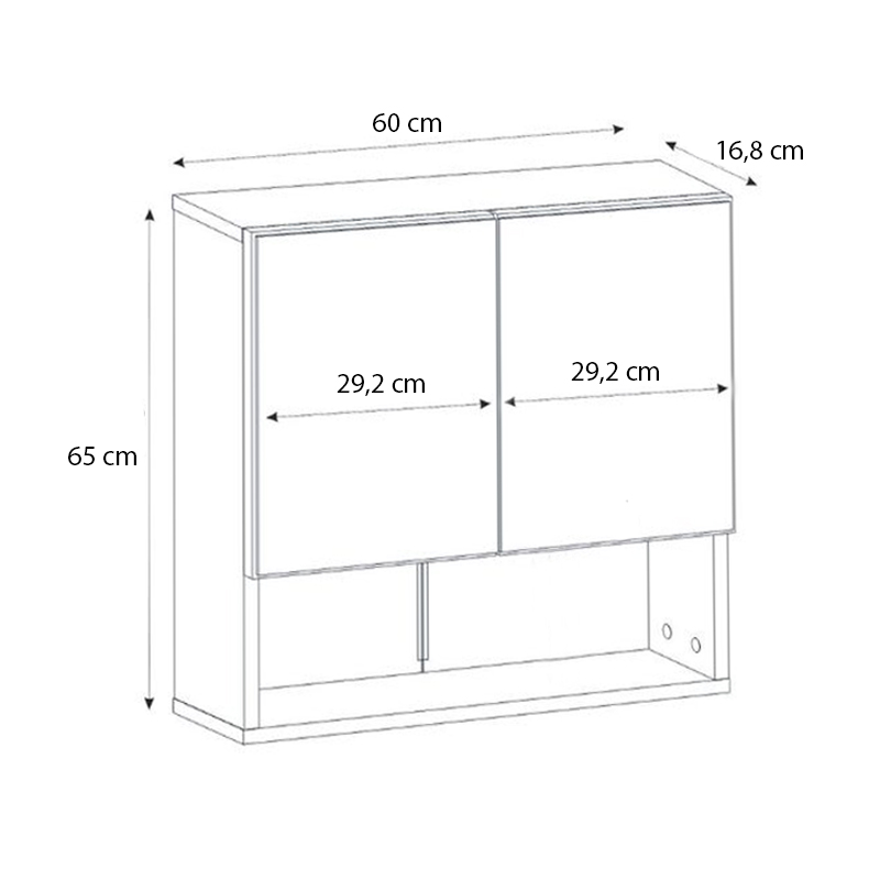 - Διαστάσεις: Μήκος 60 x Βάθος 16,8 x Ύψος 65 εκ.