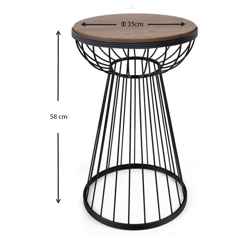 Βοηθητικό τραπεζάκι Mantare μεταλλικό - Mdf χρώμα μαύρο - καρυδί 35x35x58εκ.