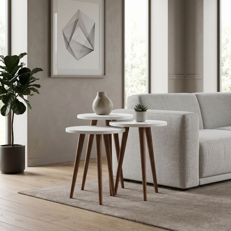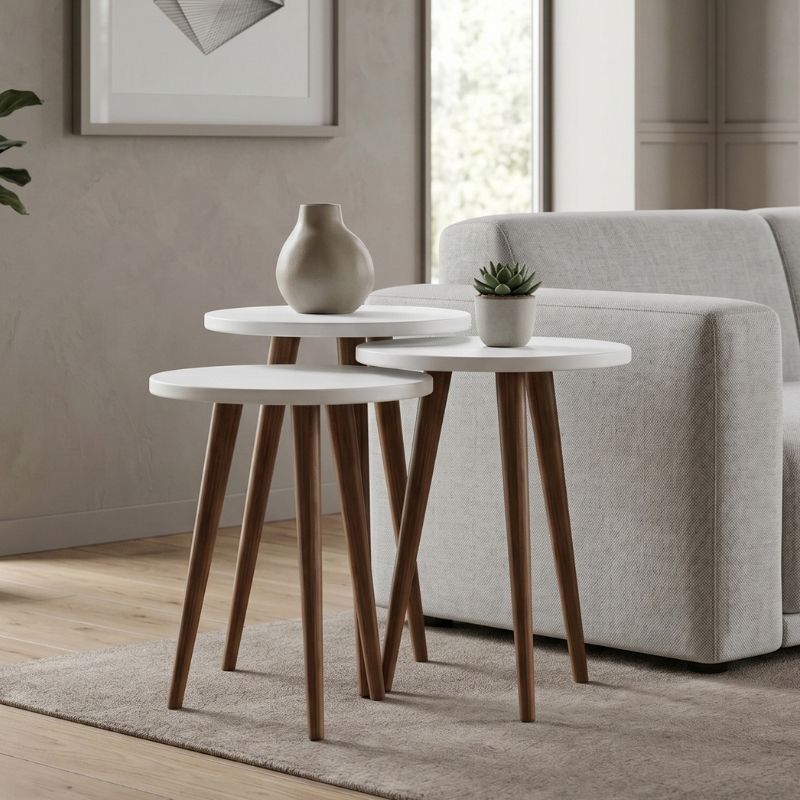 Τραπεζάκι βοηθητικό σετ 3 τμχ Cruz χρώμα λευκό Ø33x46εκ.