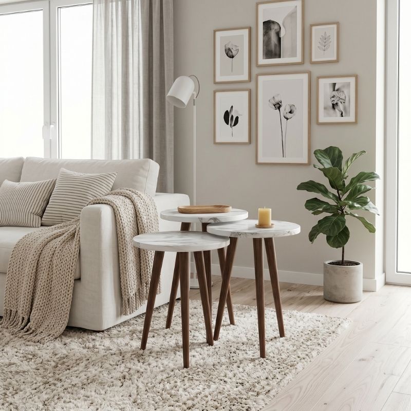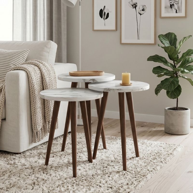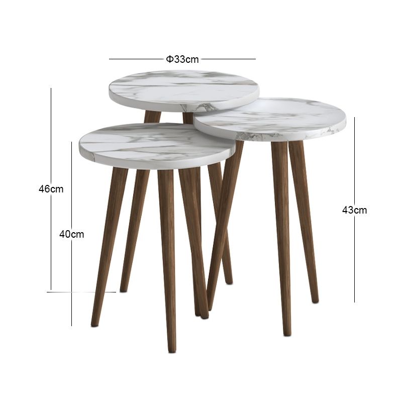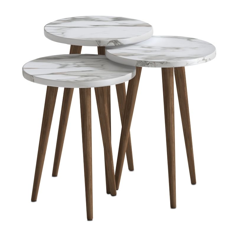 Τραπεζάκι βοηθητικό σετ 3 τμχ Cruz χρώμα λευκό εφέ μαρμάρου Ø33x46εκ.