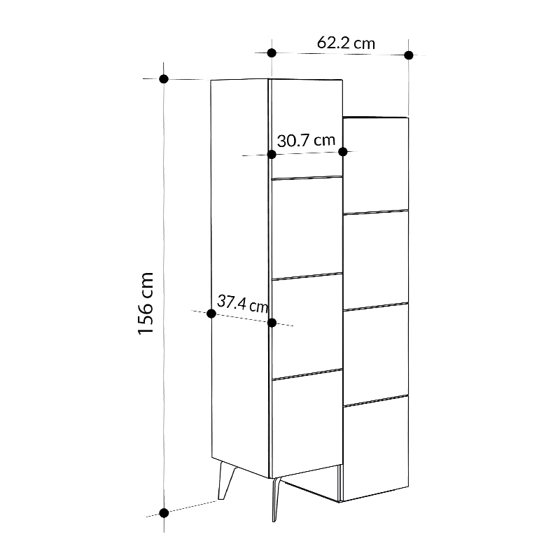 - Διαστάσεις: Μήκος 62,2 x Βάθος 37,4 x Ύψος 156 εκ.