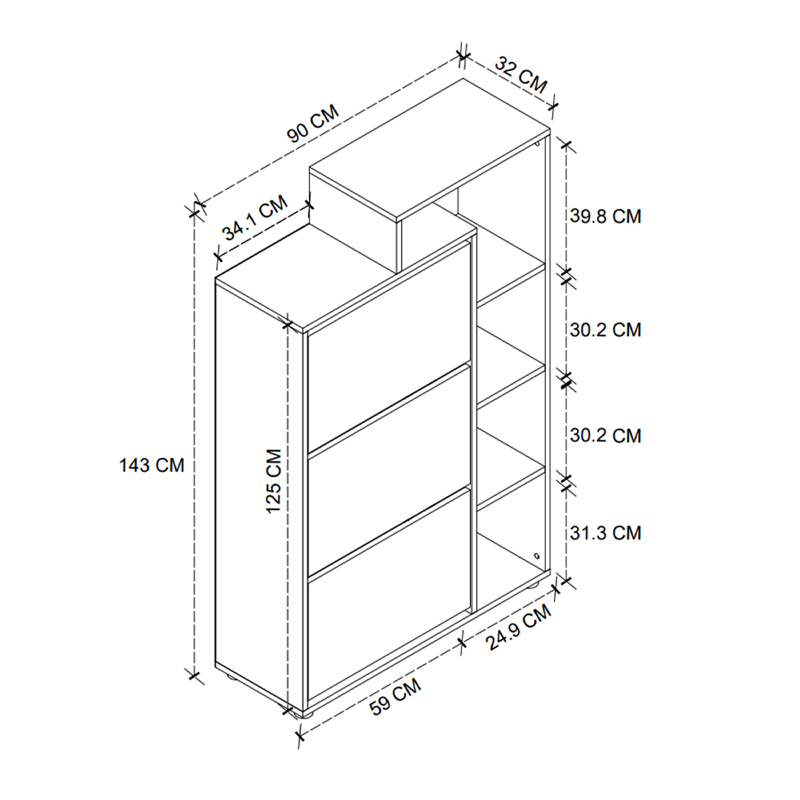 Παπουτσοθήκη Lego χρώμα pine oak 90x32x143εκ.