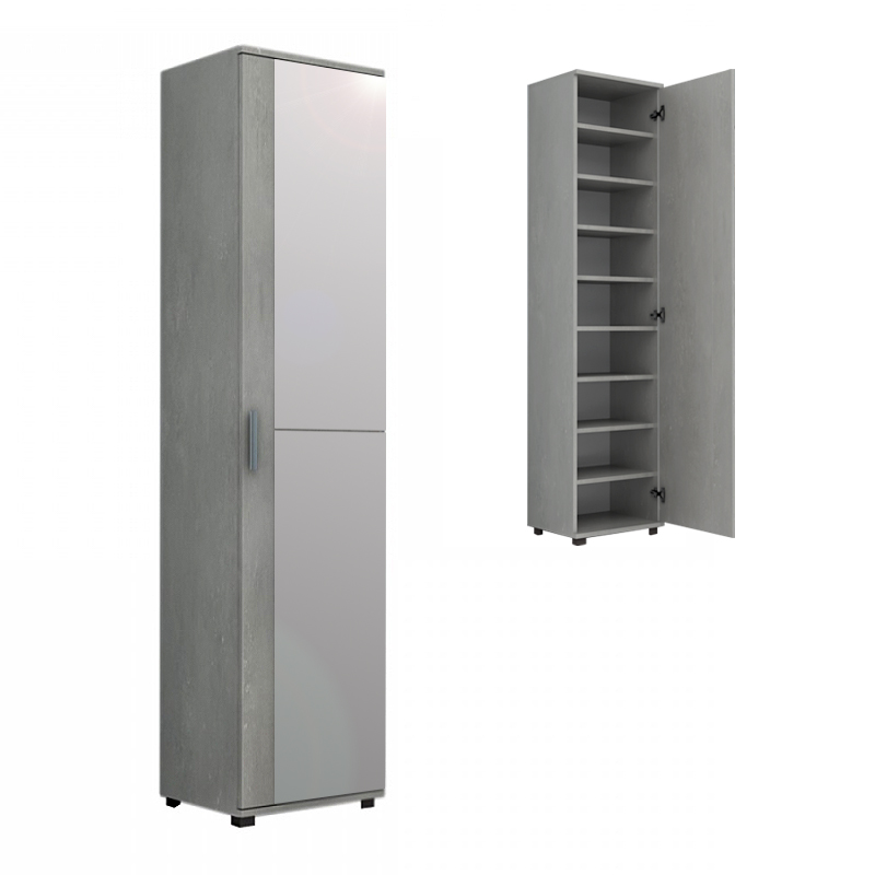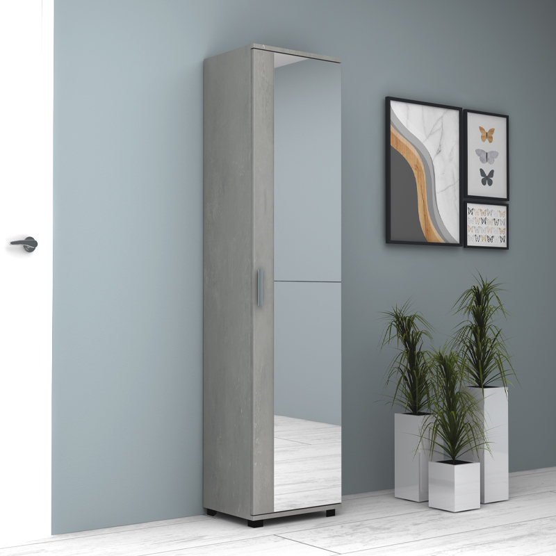 Ντουλάπα ρούχων - παπουτσοθήκη Visla μονόφυλλη με καθρέπτη χρώμα γκρι σκυροδέματος 45x36x187εκ.
