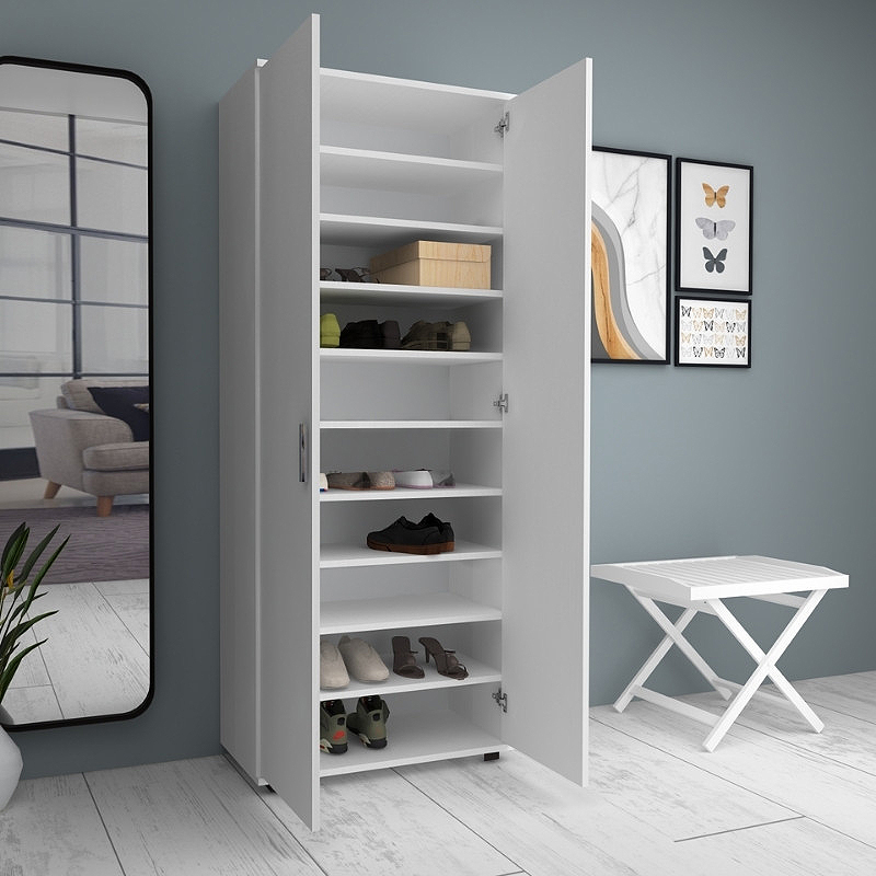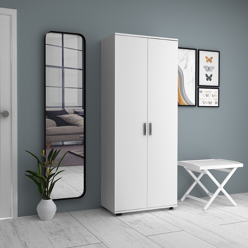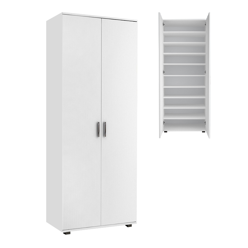 Ντουλάπα ρούχων - παπουτσοθήκη Eric δίφυλλη χρώμα λευκό 76x36x187εκ.
