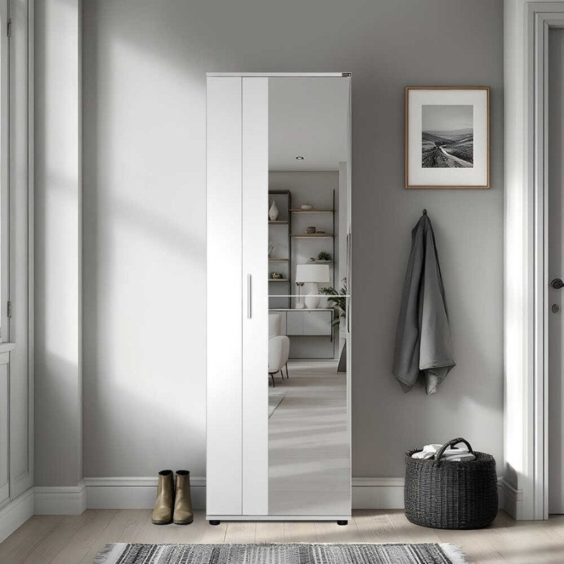 Ντουλάπα ρούχων - παπουτσοθήκη 30 ζευγών Porto μονόφυλλη με καθρέφτη λευκή 60x36x187εκ.