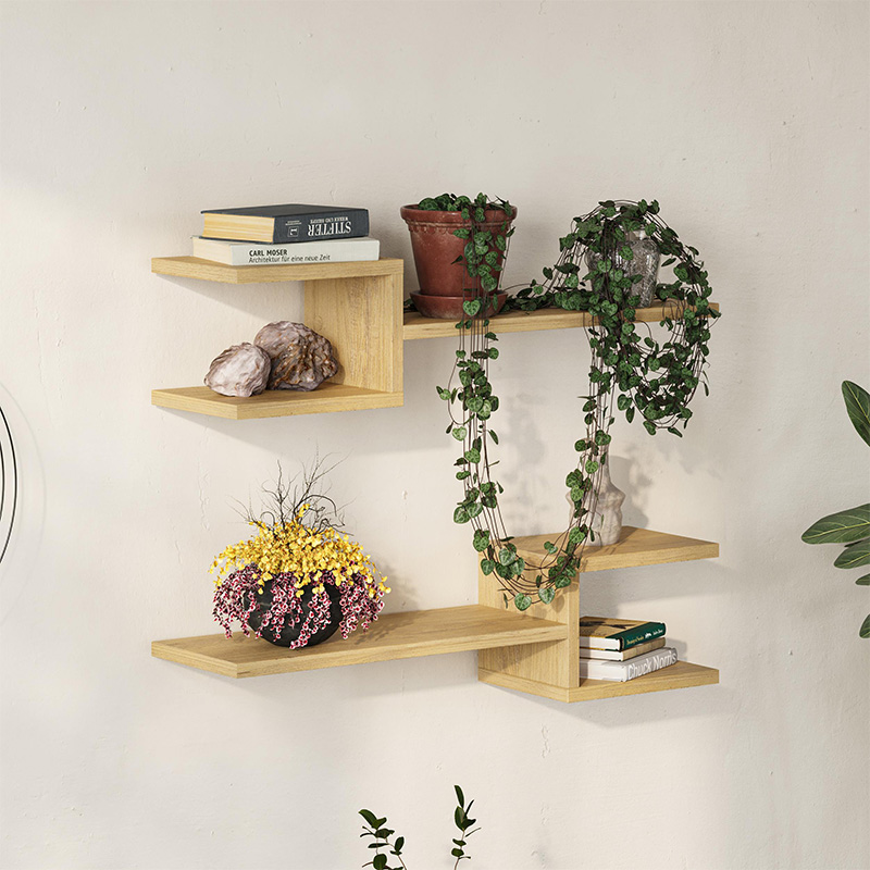 Ραφιέρα τοίχου Fork 2 τεμαχίων χρώμα sapphire oak 75x19,5x18εκ.