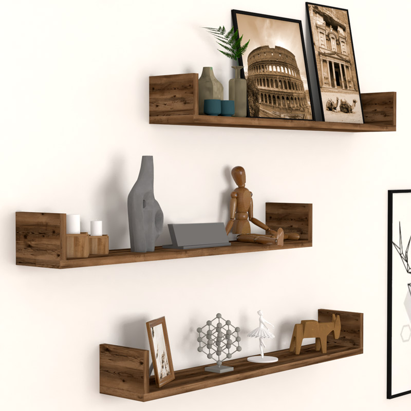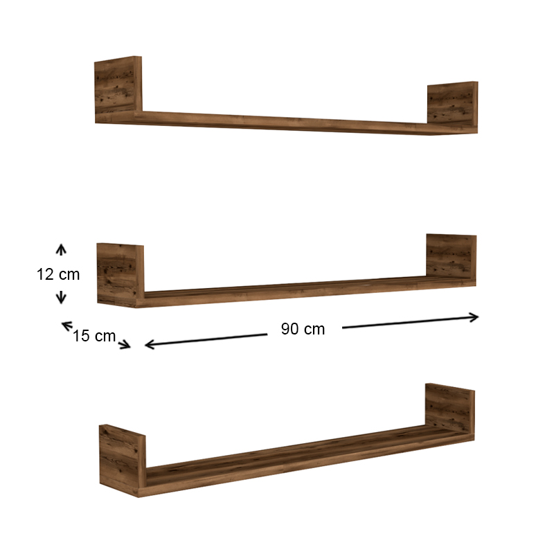 Ραφιέρα τοίχου Tyrion 3 τεμαχίων χρώμα καπνιστή καρυδιά 90x15x12εκ.