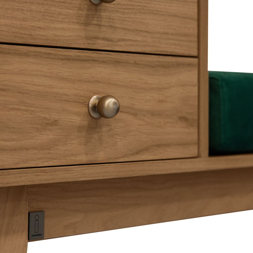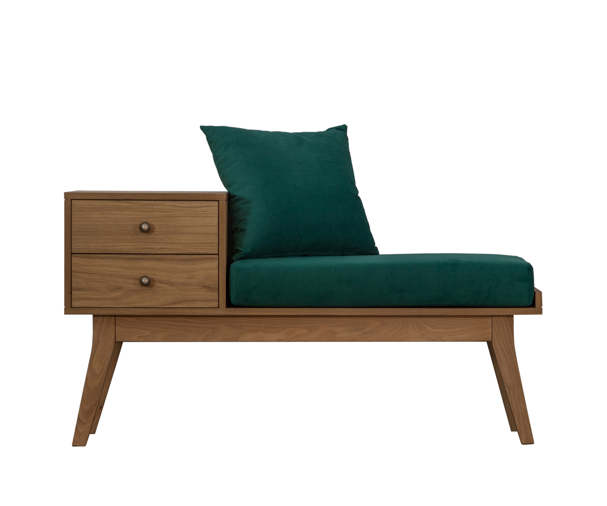 Δυο συρτάρια, ένα αναπαυτικό μαξιλάρι και η δρύινη επιφάνεια του το κάνουν, εκτός από ελκυστικό, χρηστικό δίνοντας έναν ξεχωριστό αέρα στον χώρο που θα τοποθετηθεί
